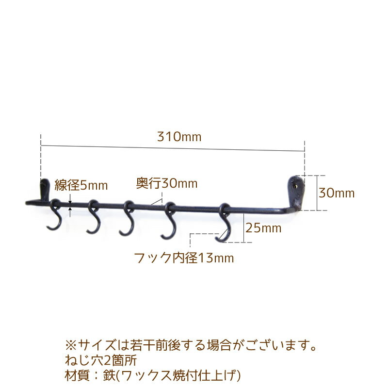 余分な装飾がないので、空間のイメージを崩さない、しかしさりげなく控えめな個性を感じるのはハンドメイドのロートアイアンならでは。計量スプーンやオープナーなどのキッチンツール掛け、壁掛けのアクセサリーハンガーにもおすすめ。
