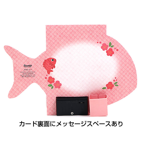 グリーティングカード レモダシリーズ専用 鯛 メロディカード 3073円 サンリオ タイ 木製両開き扉 のし紙と紅白の水引が付いためでたい 立体カード P125 お誕生お祝い 1段上置き用 電池交換可能 バースデーカード