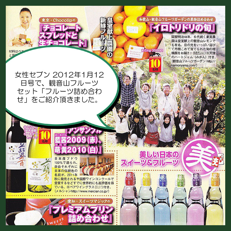 満天☆青空レストランや、大阪ほんわかテレビ、す・またん!、NHKあさイチ!、Mart、じゃらんなど、テレビや雑誌の取材も多数!観音山フルーツガーデン自慢の旬の果物詰め合わせセット!