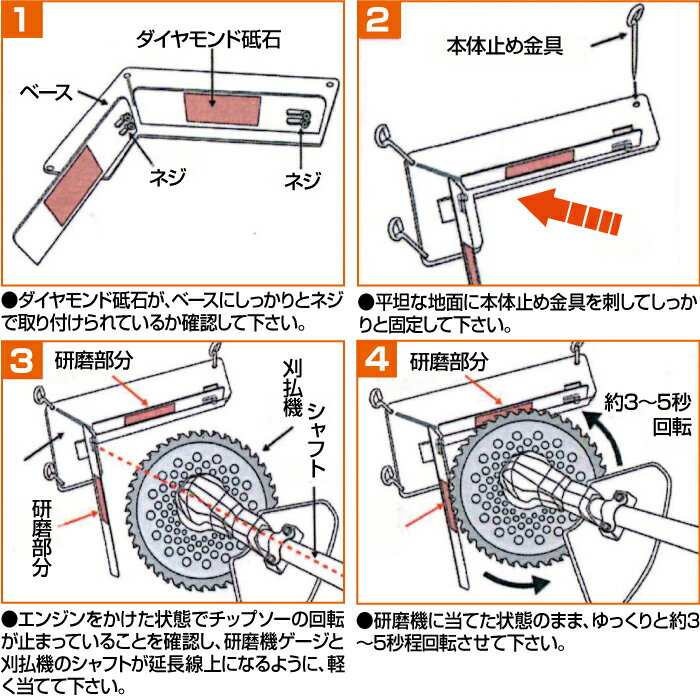現場で一発、電源いらず!チップソーを当てて回転させ即研磨! 草刈り機からチップソーをはずす必要がなく、草刈機の原動力を利用した研磨機! 送料無料 日本製 龍宝丸 チップソー研磨機 直径190mm-305mm用 予備砥石1枚付 刈払機用チップソー専用 ダイヤモンド 砥石 作業効率アップ 草刈機 刃 草刈り 現場で研げる おすすめ