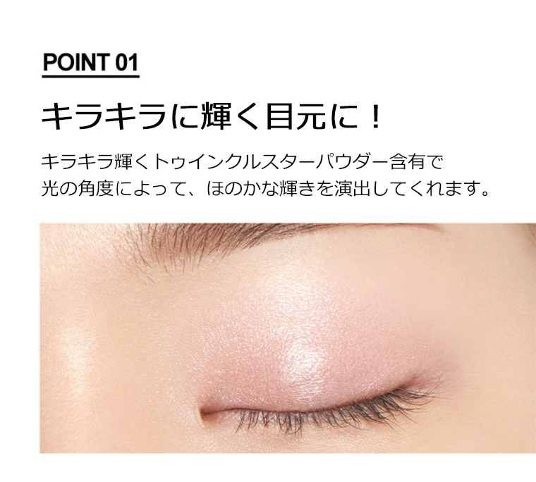 | 商品説明 | ティンクルスターパウダーとニュートリエントエッセンス配合。パール入りで華やかで立体的な目元を表現滑らかに密着され、長続き維持スティックタイプのアイシャドウ |